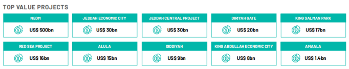 目前,沙特?fù)碛谐^3,000個(gè)活躍的建設(shè)項(xiàng)目,總價(jià)值高達(dá)1.3萬億美元,占據(jù)了海灣合作委員會項(xiàng)目市場的54%。